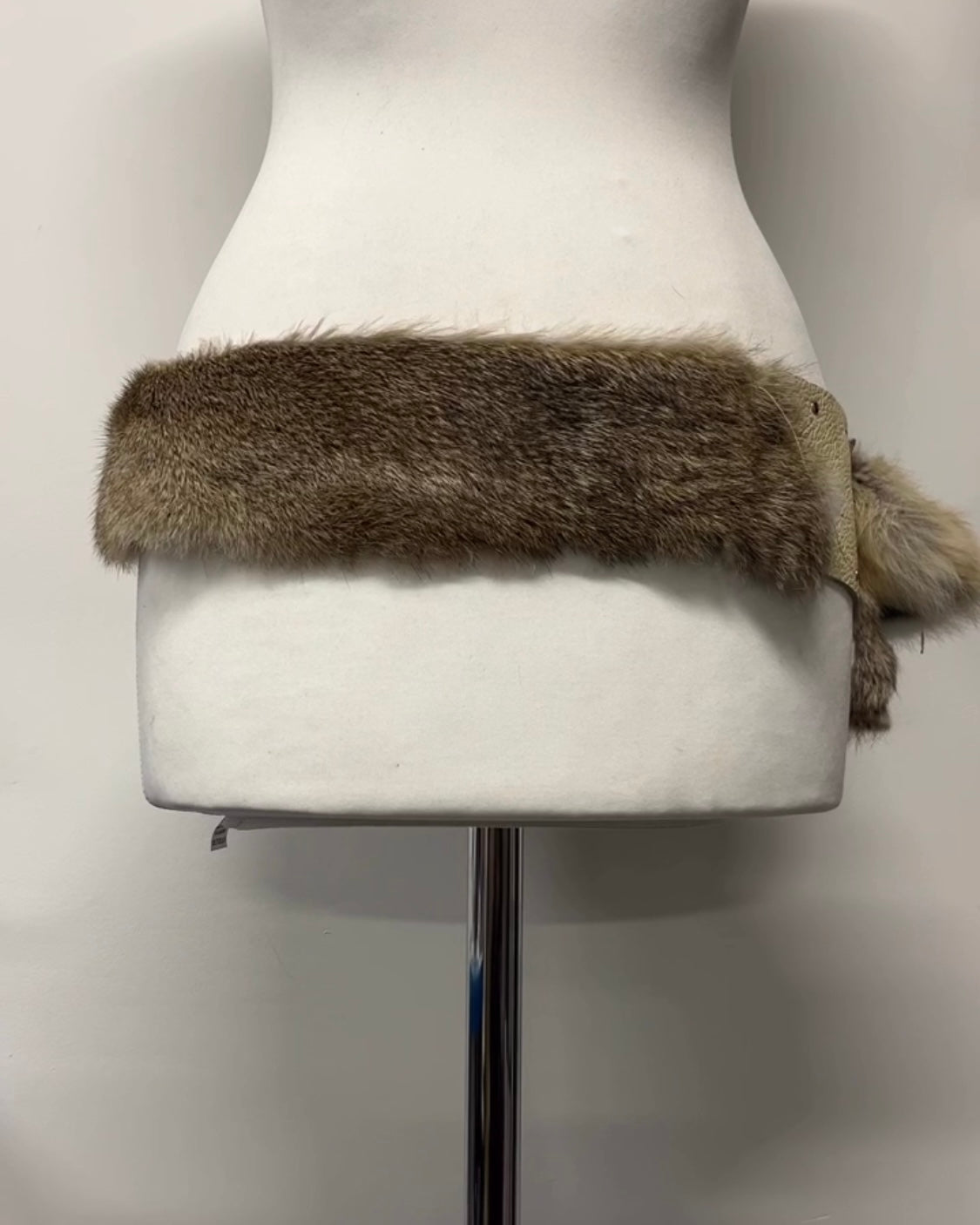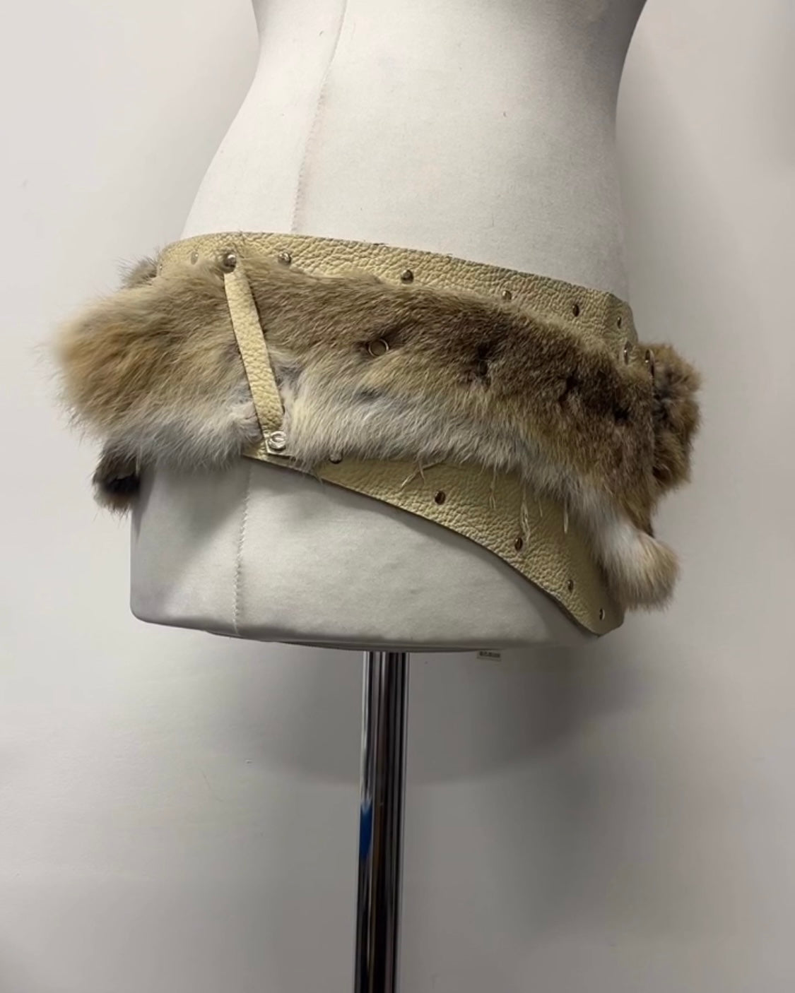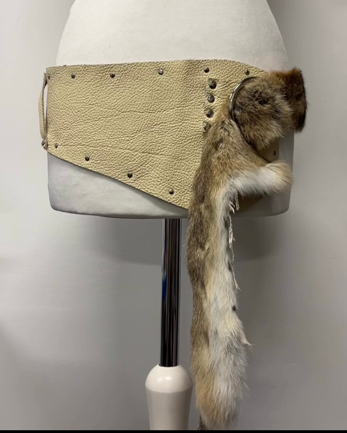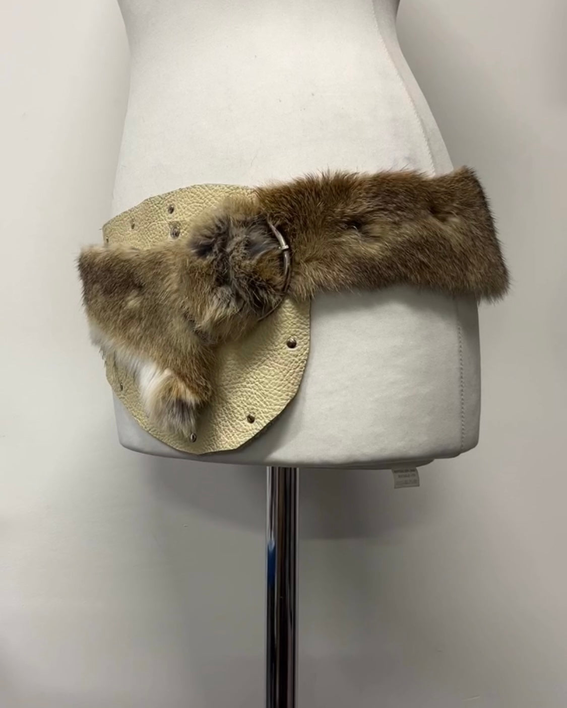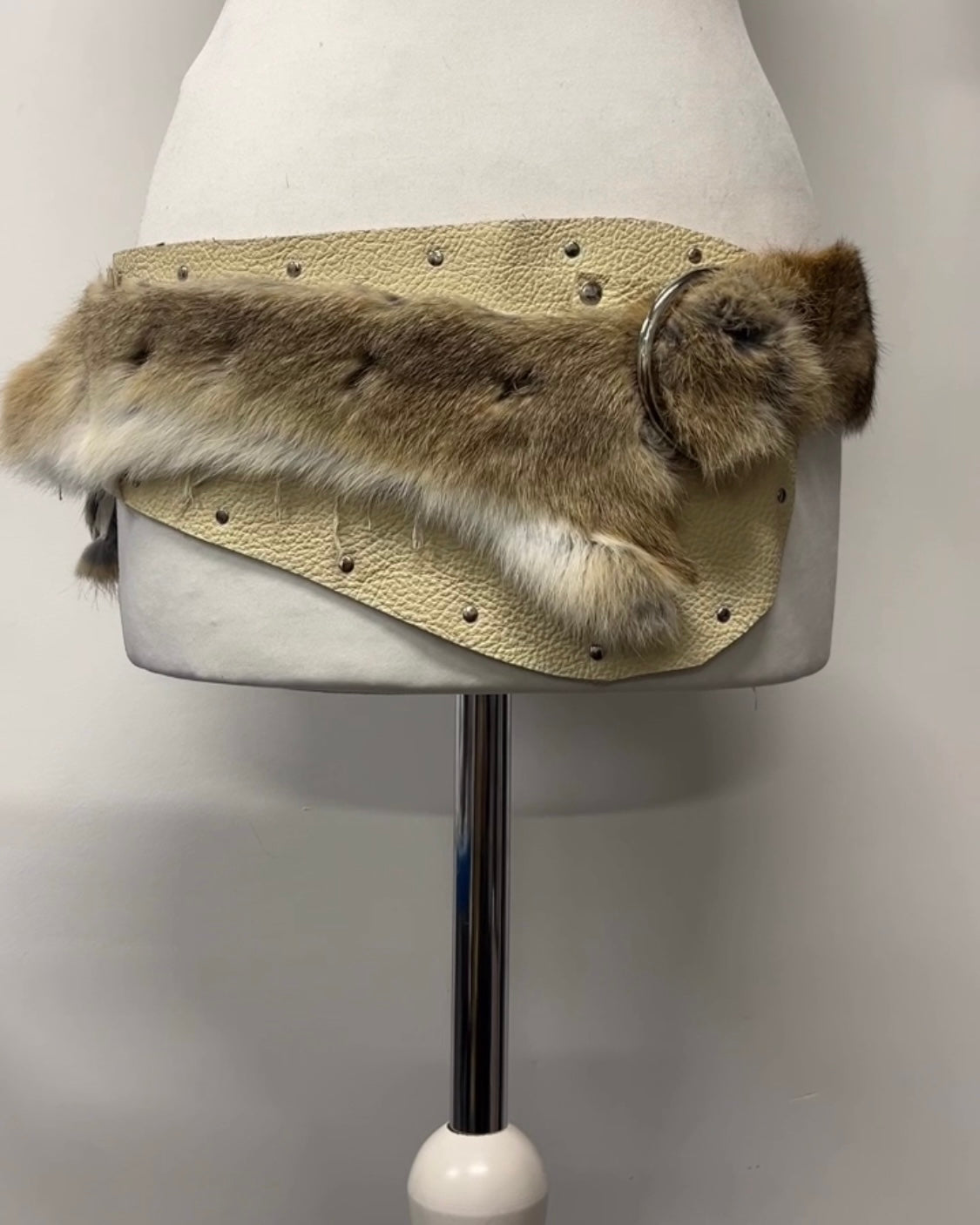 RABBIT AND LEATHER BELT WITH SILVER HARDWARE
